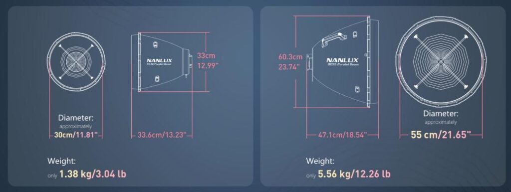 NANLUX amplia la sua linea di soluzioni avanzate per il light shaping con l’introduzione dei riflettori a fascio parallelo FE30 (RF-FE-PB) e BE55 (RF-BE-PB).