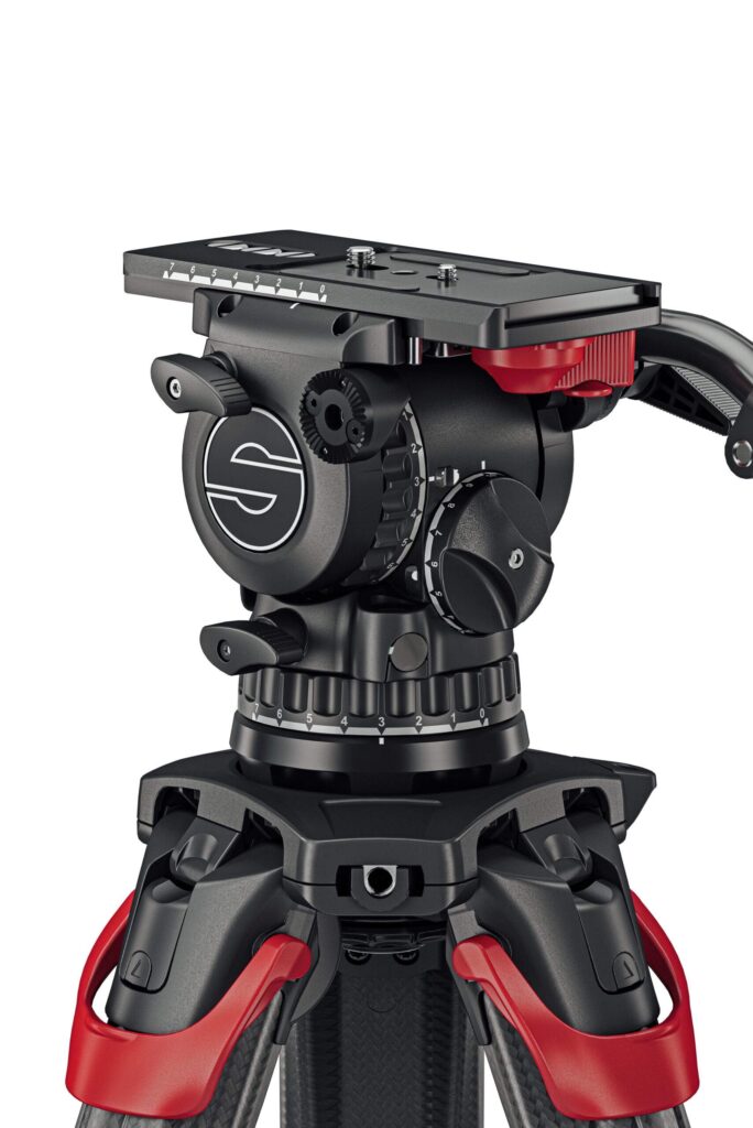 Testa fluida Sachtler FSB 16T Mk II con treppiede ENG in fibra di carbonio e stella mediana: