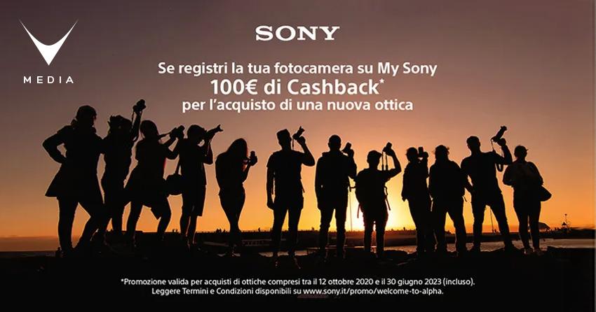 Promozione valida per obiettivi, microfoni e accessori selezionati acquistati presso i rivenditori aderenti insieme o successivamente all’acquisto di una fotocamera selezionata. Se registri una fotocamera su My Sony ricevi via mail fino a 3 codici promozionali univoci del valore di € 100 ognuno, per ottenere il cashback valido per acquisto di un massimo di 3 prodotti selezionati.