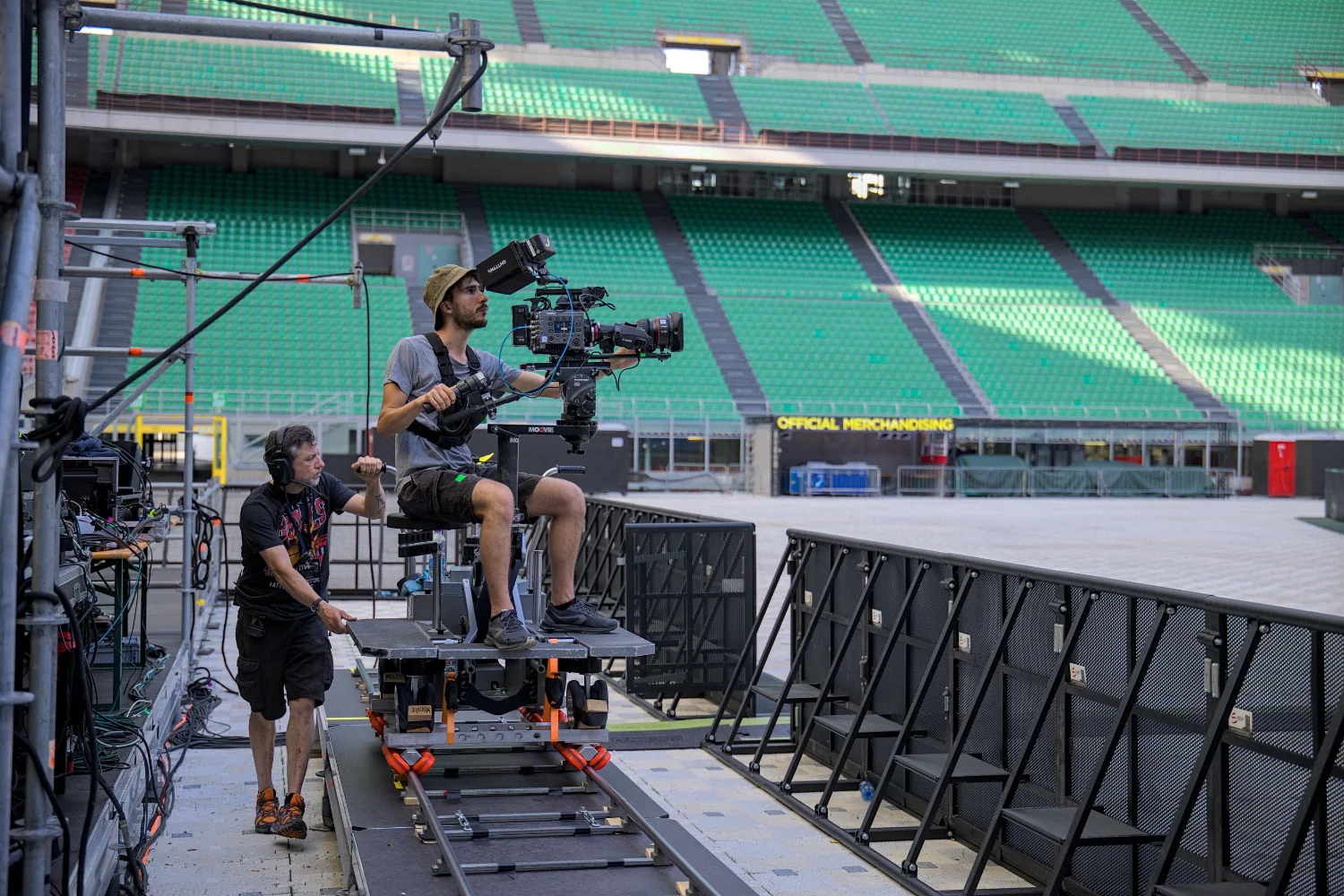 Per le riprese sono state utilizzate ben 24 telecamere Sony, molte delle quali con sensore Full Frame, tra modelli broadcast e cinema della linea Sony, tra cui HDC-4300, HDC-5500V, VENICE 2, BURANO, FX6, FX3, FX9 e le PTZ FR7 e BRC-400. L’obiettivo era chiaro: dare ai concerti una forte impronta cinematografica, senza rinunciare alla potenza e alla continuità del live.