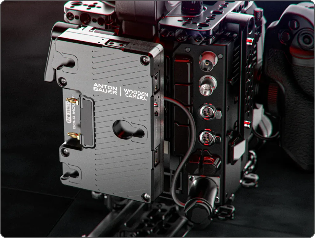 La slitta per batterie hot-swap si collega direttamente al retro della camera e include 3 D-Tap per accessori, oltre a un fusibile digitale con pulsante di reset per evitare danni o interruzioni di corrente alla camera e agli accessori.