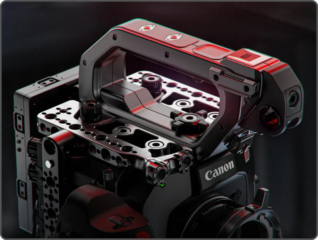 La piastra superiore modulare è progettata per essere simmetrica e compatibile sia con l’impugnatura Canon che con l’impugnatura Wooden Camera Ultra.